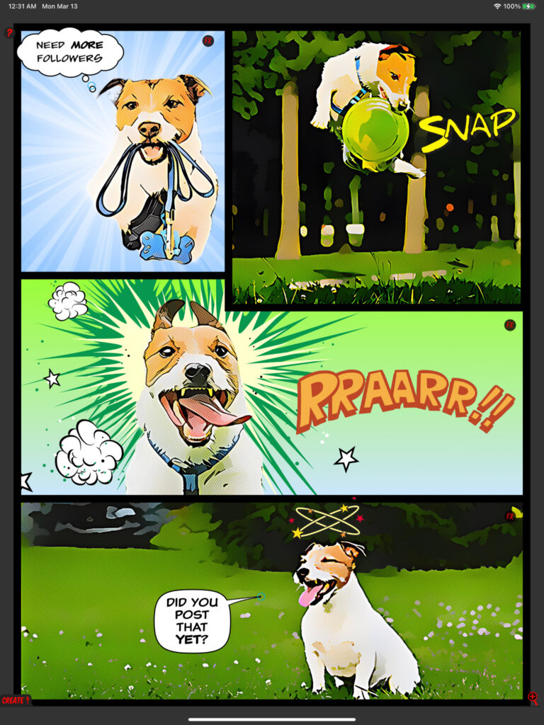 “Comic book heaven. Probably the best all around type of comic book creator on the market. You can filter and create and upload to other apps. There isn’t another app that can do this. A lot more layouts. Only thing I wish for the future is the option to change the sizes of captions or titles and make them 3D. Now that be a cool extra.”